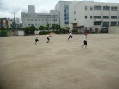 なわとびをしながら、走っています。とても速く走ることができる人もいましたよ。
