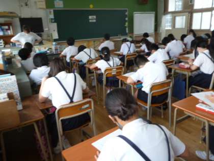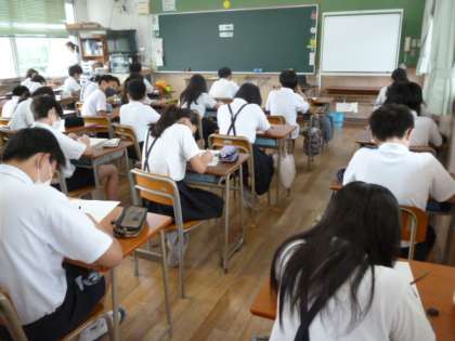 朝の学活の時間を利用して、計算力を確かめる確認テストをしています。みんな真剣です。