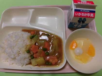 ★チキンカレーライス・フルーツ白玉・牛乳