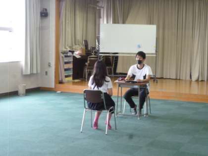 今日は一人ひとりの会話テストです。挨拶をした後、自分の好きな季節と、行事について、先生の質問に対して答えていました。