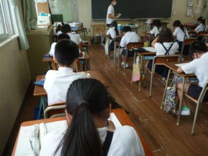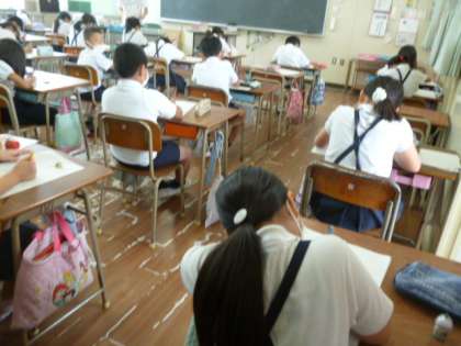今日は大阪市についてのテストをしています。テストの裏には大阪市の24の区が書けるようになっています。何個の区を覚えたかな?