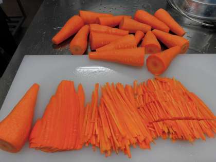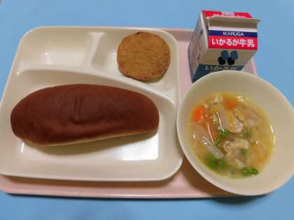 「スープ」は、豚肉を主材に、キャベツ、たまねぎ、にんじん、彩りにグリンピースを使用しています。暑い時期に食べやすいよう、あっさりと仕上げています。