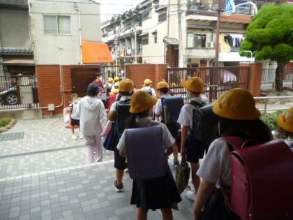 終業式の後は、集団下校の班で集まって、下校をしました。緊急時に集団下校をすることがあるので、しっかりと覚えていてくださいね。