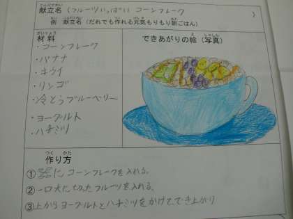 まだまだ、「朝ごはんを考えよう!」は募集しています。まだ出していない人も、夏休み中に考えて、2学期の始業式(8月25日)に担任の先生に渡してくださいね。(朝ごはんの用紙がない人は学校がある日の職員室(萩先生の机の上)にあります。)