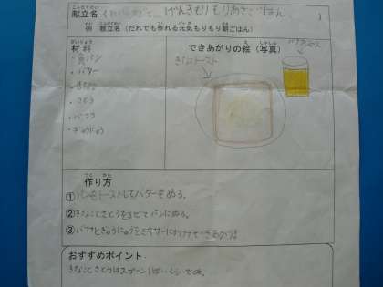 ★今日から、少しずつみなさんが考えてくれた朝ごはんの紹介をしていきます。「これいいな。できそうやな。」と思ったらぜひおうちの人と作ってみてくださいね!