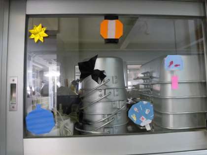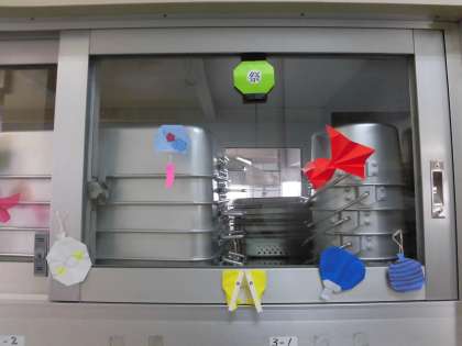 給食室では子どもたちのために、楽しい飾りを用意してくださいました。