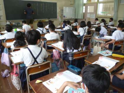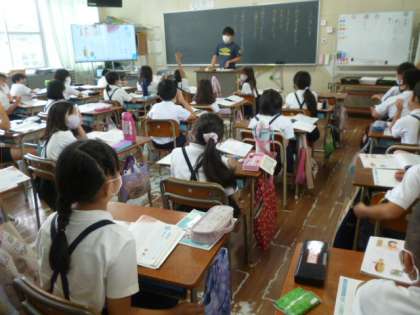 「ふろしき」について意見を言い合っています。みんなにとってはあまりなじみのないものかもしれませんが、そこから日本の伝統文化について、たくさんの意見を積極的に発言していました。