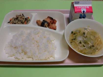 ★さけのしょうゆ風味焼き・五目汁・高野どうふのいり煮・ご飯・牛乳