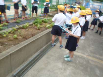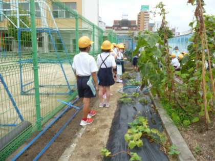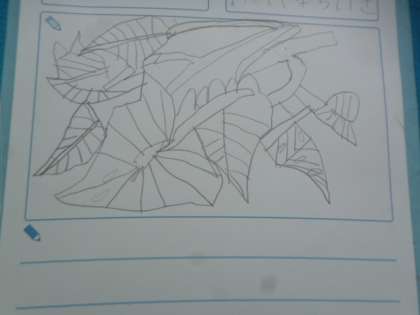 サツマイモの成長の様子を絵に書いています。サツマイモは少し育ちが悪いのですが、みんなの絵は上手に書けていましたよ。