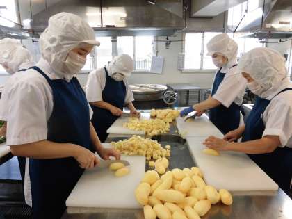 「肉じゃが」は、牛肉とじゃがいもを使用したご飯がすすむ献立で、児童生徒にも毎回好評です。肉じゃがはお肉のうま味や脂がしっかりと味をつくっており,ジャガイモの味と調和していました。
