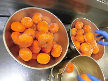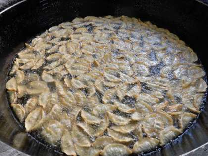 「あげぎょうざ」は、児童生徒に好評な献立です。小学校は1人2個、中学校は3個、170度の油で揚げます。