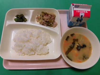 ★豚肉の甘辛焼き・みそ汁・オクラのおかかいため・ご飯・牛乳