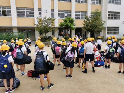 出発式(しゅっぱつしき)も終(お)わり、今(いま)からまず初(はじ)めに「明治(めいじ)なるほどファクトリー関西(かんさい)」に向(む)かいます!