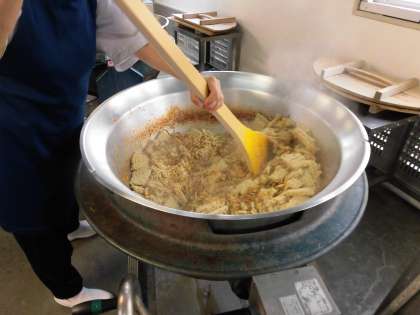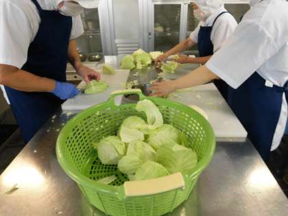 「きゅうりのしょうがづけ」は、焼き物機で蒸し、しょうが汁、砂糖、うすくちしょうゆで作った調味液に熱いうちにつけこみ、味を含ませます。