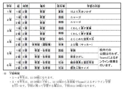 ・学級により授業の公開時刻が異なります。