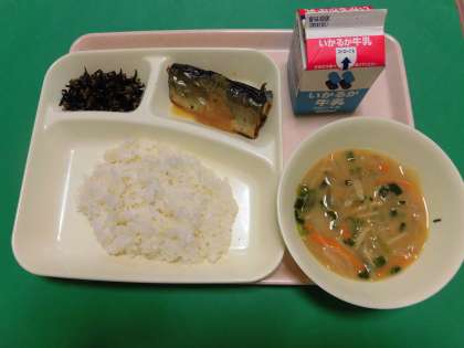 ★さんまのみぞれかけ・みそ汁・牛ひじきそぼろ・ご飯・牛乳