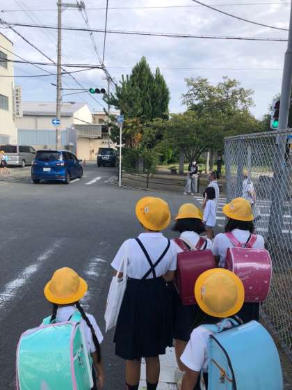 土曜参観に合わせて,PTA実行委員を中心に地域の見守り隊のみなさんと協力して,登校支援を行いました。気持ちの良い季節になりましたね!