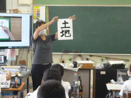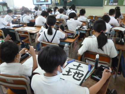 今日は「土地」という字を書いています。みんな真剣に丁寧に書いています。