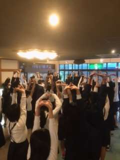 6時半に起床し、全員検温とシーツの片付けをして、7時にあさの集いをしました。