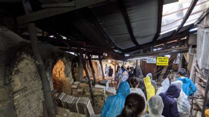 最後は、大きなのぼり窯を見学しました。今から学校に帰ります。待っててね!