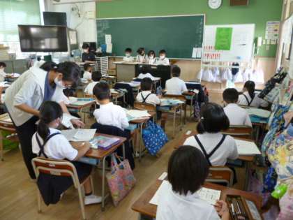係の人たちが前に来て、宿題の答え合わせをしています。一日の始まりも随分とスムーズになってきました。