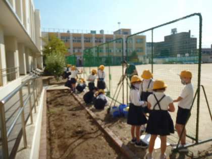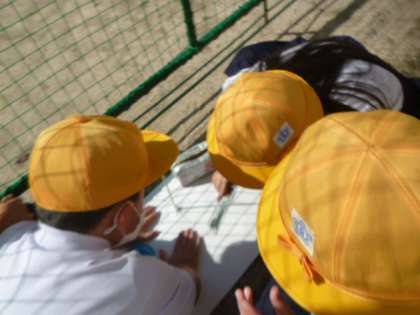 太陽の動きを調べています。この実験は晴れた日にしかできない実験で、今日は実験びよりです。休み時間に何回か観察していきます。