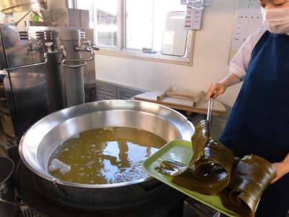 「みそ汁」は、うすあげ、たまねぎ、しめじ、青みに青ねぎを使っています。みそ汁は、立派なだしこんぶとけずりぶしを使って濃厚なだしをとっています。