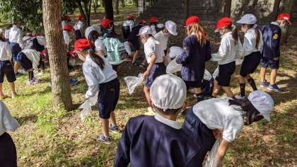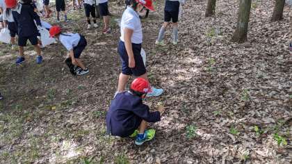 どんぐり拾いの様子です。みんな必死に探して、先生見て見て、といろいろなどんぐりを 見せてくれました。