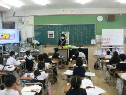 国語「サラダで元気」では、のらねこが「かつおぶし」をすすめてくれます。「かつおぶしを食べると木登りだって上手になれるよ。」と言います。なぜ、かつおぶしを食べるときのぼりが上手になるのかを考えます。
