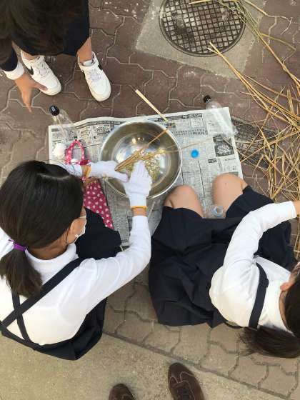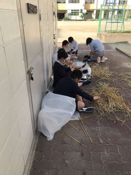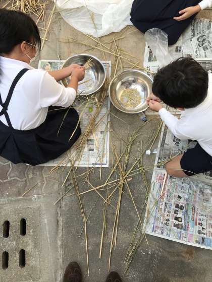 先日の委員会で環境委員会の児童が脱穀を行いました。