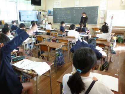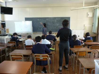 二つのグループに分かれての算数の授業です。公約数について学習をしています。