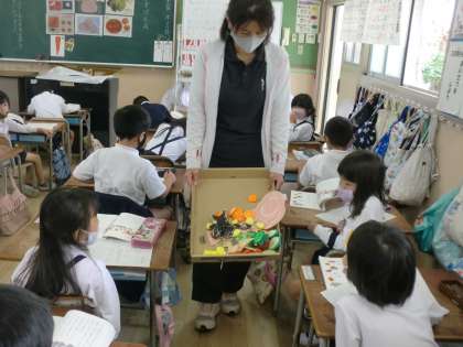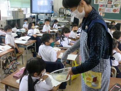 「すっぱいかんじや。」「いいにおい。」とマスク越しにも子どもたちは、感じてくれていました。