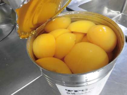 「黄桃(缶)」は、1人1切ずつです。大きくてとても食べ応えがありました。