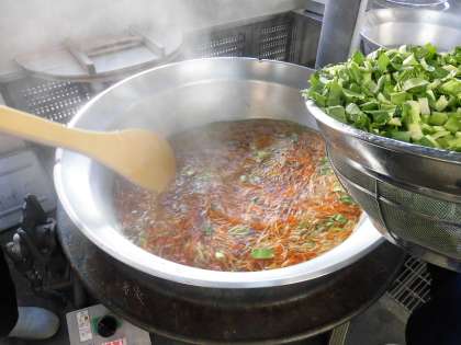 「タンタンめん」は、豚骨スープを使用し、チンゲンサイ、もやし、にんじんを使った汁めんに、ひき肉、白ねぎ、しょうが、にんにくを使い、テンメンジャンや赤みそなどで味つけした肉みそを 配食時にのせて食べます。