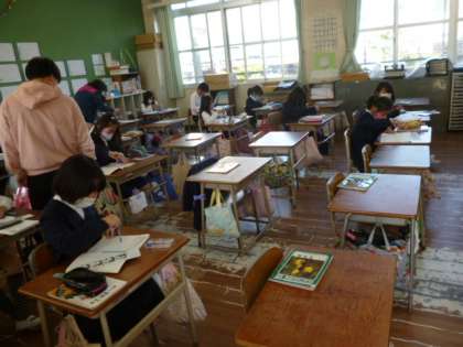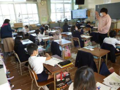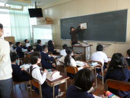今日はクラスを二つに分けての授業です。コンパスの使い方について、学習しています。