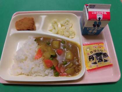★カツカレーライス・カリフラワーのピクルス・いり黒豆・牛乳