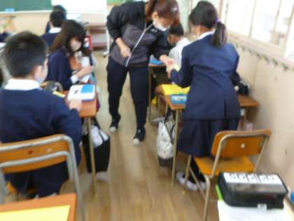 ポケットティッシュケースを作っています。細かな作業ですが、みんな、なかなかのものです。きれいに仕上がるかな?