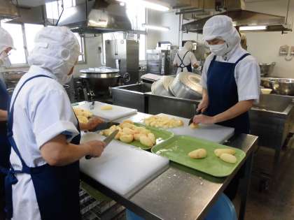 「はくさいの甘酢あえ」は、冬が旬のはくさいをゆ焼き物機で蒸し、砂糖、塩、米酢を合わせたタレであえます。