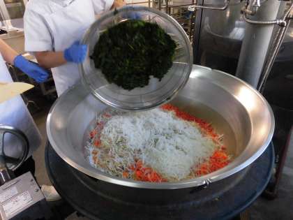 検食での感想は「挽肉のこくともやしのシャキシャキ感が非常によくマッチしていて美味しかった。」です。