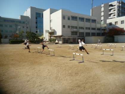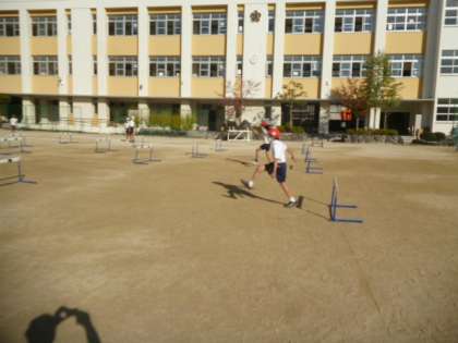 30mハードル走のタイムを計っています。各コース、ハードル間のインターバルが違いましたが、自分に合った距離を見つけて、チャレンジをしていました。