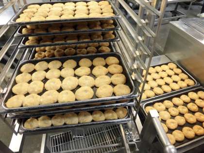 手ごねの手作りハンバーグとして、手間をかけた1品です。4、5人で約1時間かけて丸め、形を整えてつくりました。愛情たっぷりです。