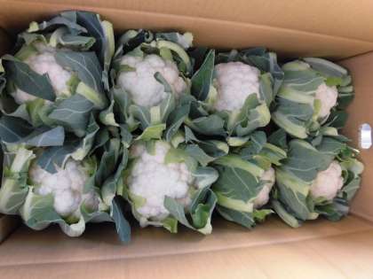 「カリフラワーのスープ 煮」は、豚肉、キャベツ、カリフラワー、にんじん、しめじ、さんどまめを使用しています。カリフラワーは、とても立派な新鮮なものが入っていました。