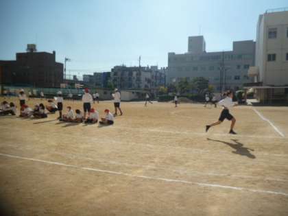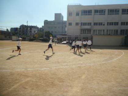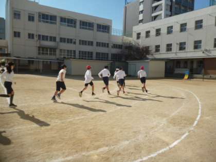 今日は運動場を8周走ります。さすがは6年生。体力がついてきている人はとても速いペースで、走っていました!記録をとっている人もしっかりと応援していました。