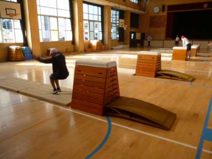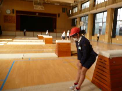 体育館で跳び箱の練習をしています。一番跳べるグループは8段をなんなく、跳んでいました。みんな日に日に上手になっていて、跳べる段が少しずつ増えています。