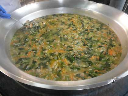 「肉だんごと麦のスープ」は、肉だんごと食物繊維の多い押麦のスープです。旬のだいこんや、ほうれんそう等を使用しています。程よいとろみがあり、肉だんごの旨味でとても人気でした。