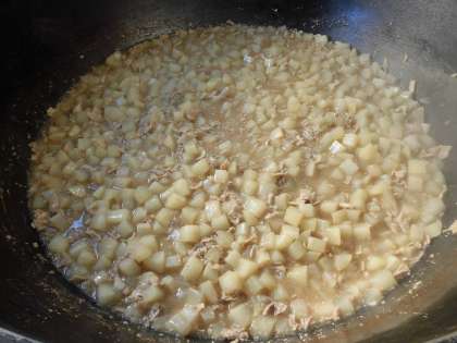 「だいこんの煮もの」は、冬が旬のだいこんと豚肉をだしで煮上げ、みりん、うすくちしょうゆで味つけし、でん粉でとろみをつけて仕上げます。