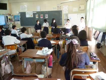 できることとできないことをどう言うかの学習をしています。授業の後半には予め、グループで先生にインタビューしたことを発表しました。