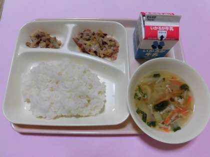 ★豚肉のねぎじょうゆ焼き・すまし汁・れんこんのおかかいため・ご飯・牛乳