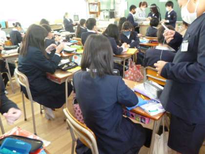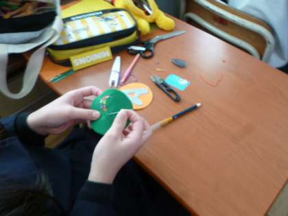 マスコットキーホルダーを作っています。みんなそれぞれ自分の好きなものを作品にしています。