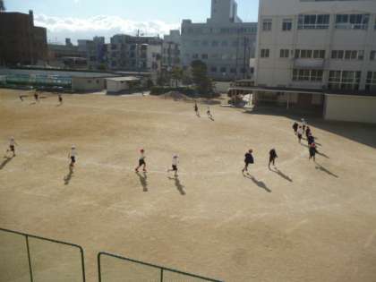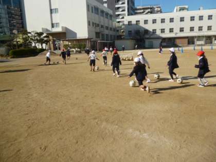 運動場を走ったり、なわとびをしながら走ったり、サッカーボールをけりながら走ったりしました。今日はたくさん走りました。